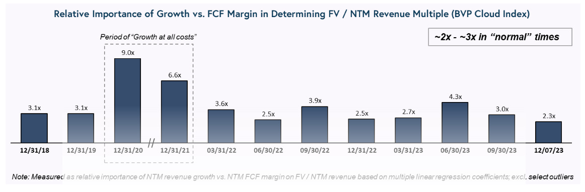The period of 20-21 (“Growth at all costs”) represents a shift in the balanced (dominant) evaluation which at normal times gave growth 2-3x more weight than a unit of FCF Margin.